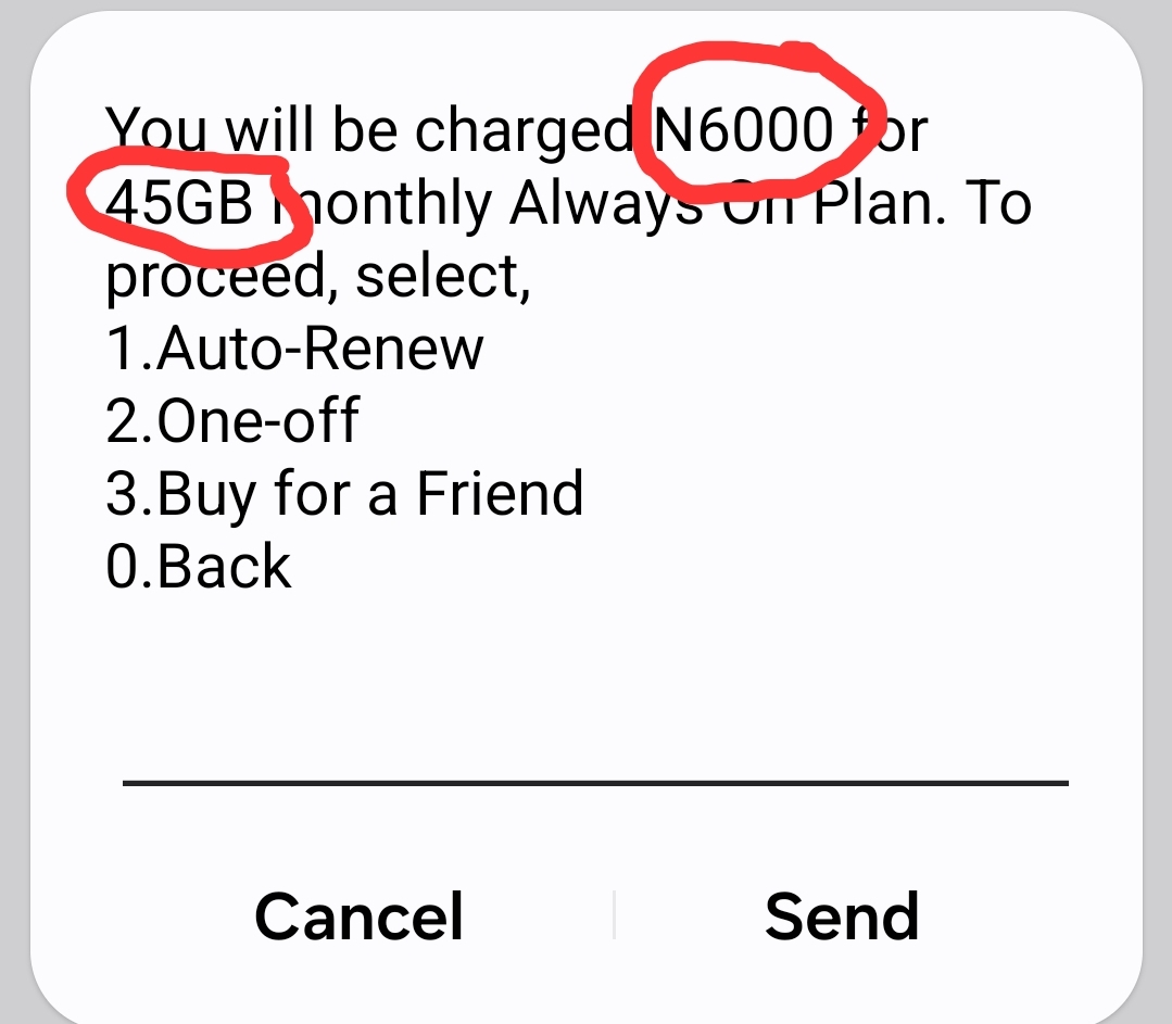 Ussd code for 45gb at 6000 naira