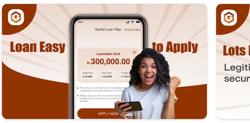 Rocket Loan Plus is a mobile loan app. It helps you borrow money directly to your bank account. The app gives personal loans and payday loans. You can apply for any amount between ₦5,000 and ₦300,000.